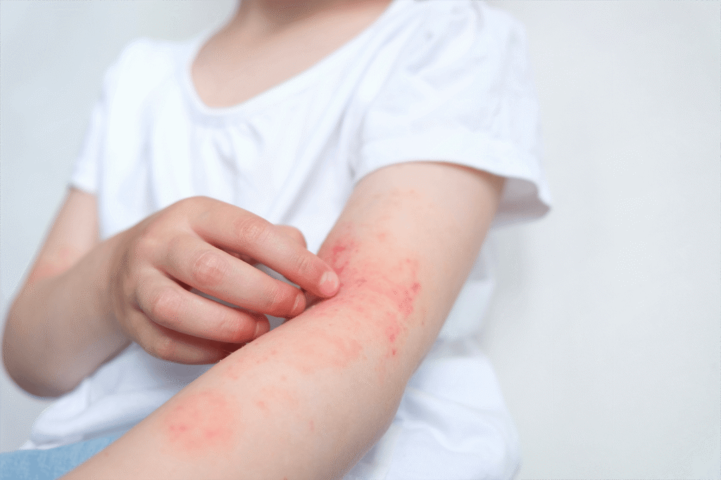 主な症状は強いかゆみと、それに伴う湿疹(赤み、ブツブツ、じゅくじゅく、ゴワゴワするなど多彩)で、かきむしることでさらに症状が悪化するという悪循環に陥りがちです。